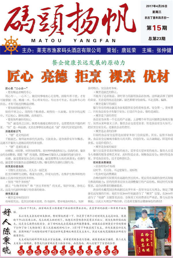 碼頭揚帆第15期(策劃唐延榮主編張仲。 2017-5-8 本文被閱讀 5090 次
